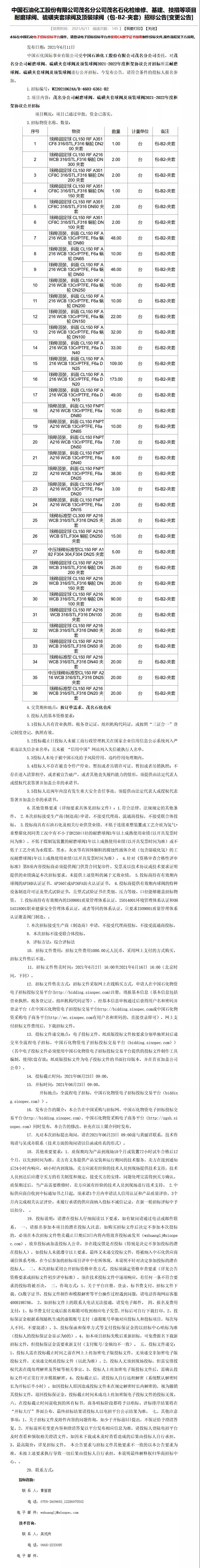 本公告在中國采購與招標網、中國石化物資電子招標投標交易平臺(http://bidding.sinopec.com)、中國石化物資采購電子商務平臺(http://ec.sinopec.com)同時發布,本公告的修改、補充在以上媒介同時發布。