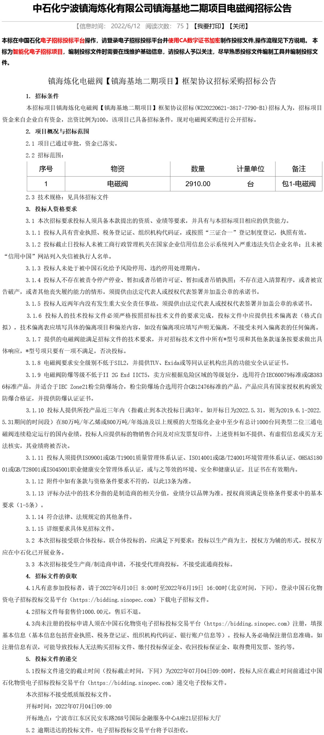 招標公告| 中石化寧波鎮海煉化有限公司鎮?;囟陧椖侩姶砰y招標公告
