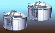 雙盤式浮頂:由上盤板、下盤板和船艙邊緣板所組成,由徑向隔板和環向隔板隔成若干獨立的環形艙。其優點是浮力大、排水效果好。