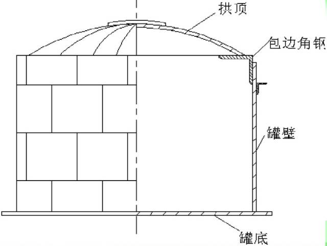 拱頂儲罐的罐頂類似于球冠形的封頭。這類罐可以承受較高的飽和蒸汽壓,蒸發損耗較少,耗鋼量和罐頂氣體空間都優于錐頂儲罐。