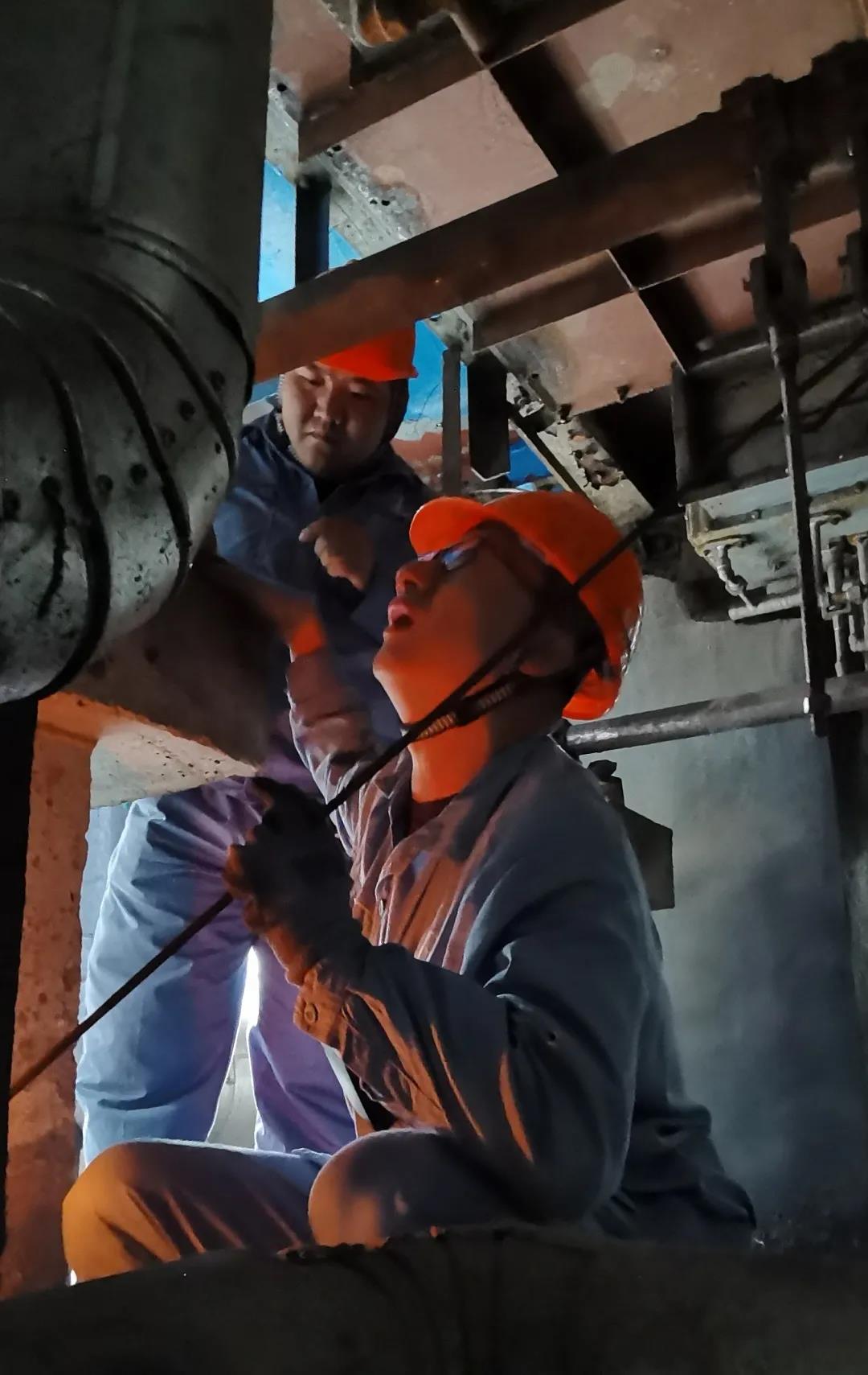 ▲ 王玉亮在檢修現(xiàn)場(左)