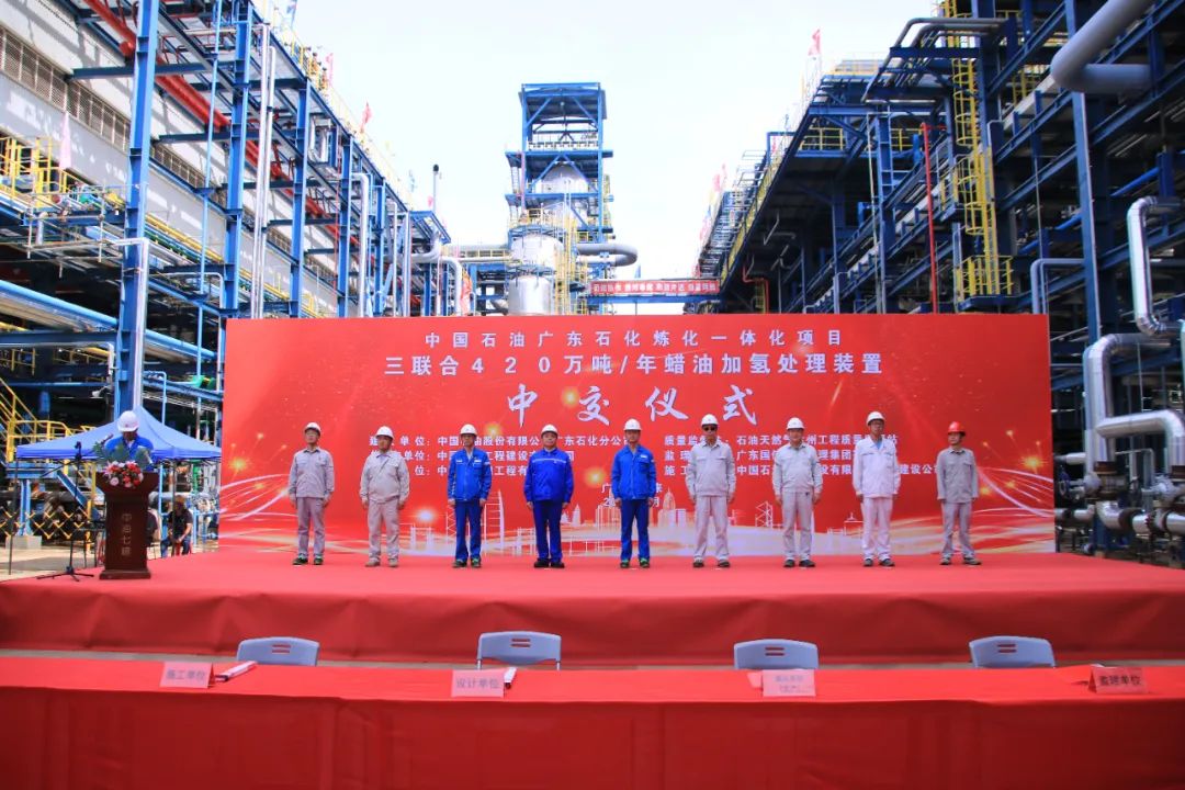 6月29日上午9:30,廣東石化煉化一體化項目420萬噸/年蠟油加氫處理裝置中交儀式在項目現場舉行。該裝置是廣東石化煉化一體化項目十大主要生產裝置之一,采用SHELL公司專利技術,為反應器并聯設置,分離系統共用流程,在該技術規模中為國內最大。裝置2臺加熱爐安裝更是開創了中國石油首個方爐整體橇塊安裝先河。