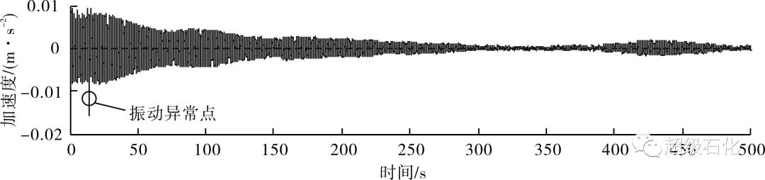 圖7 調質阻尼器釋放條件下脫硫洗滌塔橫風向測點振動加速度時程