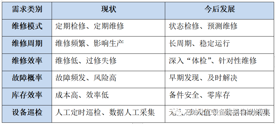 當(dāng)前設(shè)備管理現(xiàn)狀及今后發(fā)展對(duì)比如下圖: