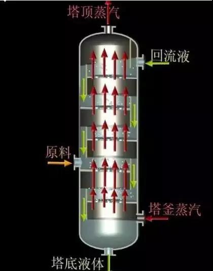 原理:液體依靠重力作用,由上層塔板的降液管流到下層塔板的受液盤,然后橫向流過塔板,從另一側的降液管流至下一層塔板。溢流堰的作用是使塔板上保持一定厚度的液層。氣體則在壓力差的推動下,自下而上穿過各層塔板的氣體通道(泡罩、篩孔或浮閥等),分散成小股氣流,鼓泡通過各層塔板的液層。在塔板上,氣液兩相密切接觸,進行熱量和質量的交換。在板式塔中,氣液兩相逐級接觸,兩相的組成沿塔高呈階梯式變化,在正常操作下,液相為連續相,氣相為分散相。