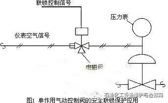 1.1.1單作用執行機構控制閥安全聯鎖保護單作用氣動控制閥使用膜頭或活塞式彈簧執行機構,安全聯鎖動作時關閉或打開控制閥。應用如圖1所示。