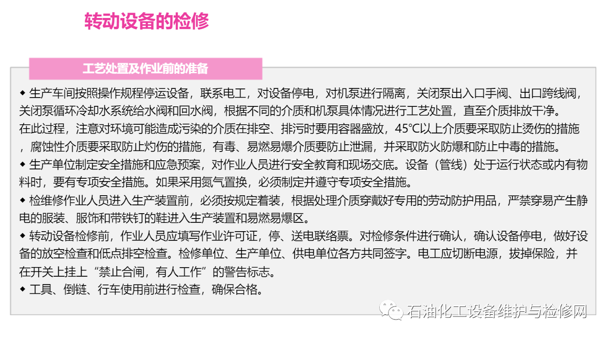 石化裝置生產運行設備檢修安全知識教學PPT課件!