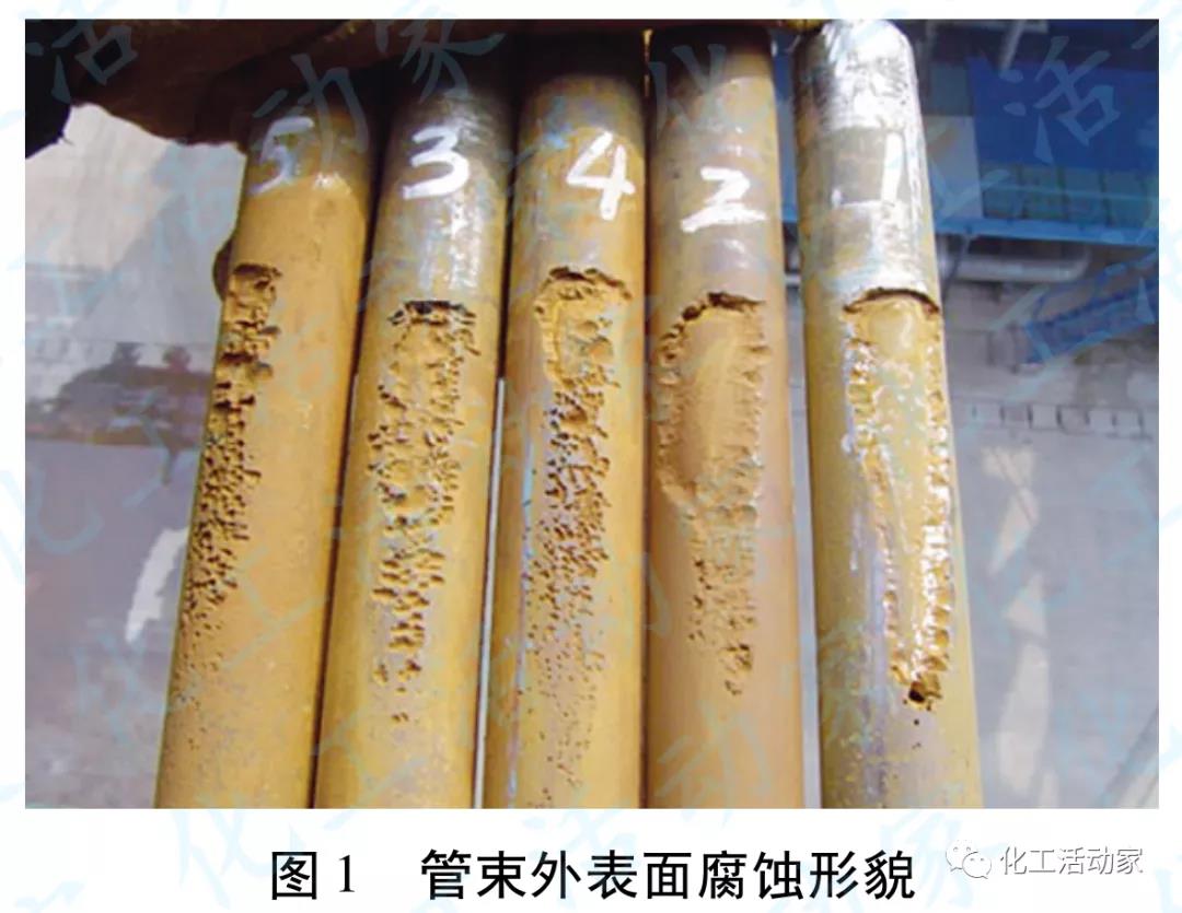 (4)對(duì)殼程介質(zhì)側(cè)物料進(jìn)行預(yù)處理。如果工藝側(cè)完全無(wú)水,或是在檢修時(shí)采用蒸餾、烘干等方式去掉殼程水分,可以大大減緩碳鋼管束工藝側(cè)的腐蝕。此外,還可以采取以下措施,如嚴(yán)格控制原料中的氯甲烷含量,通過(guò)加堿中和等方式調(diào)整物料pH值,加入緩蝕劑等。