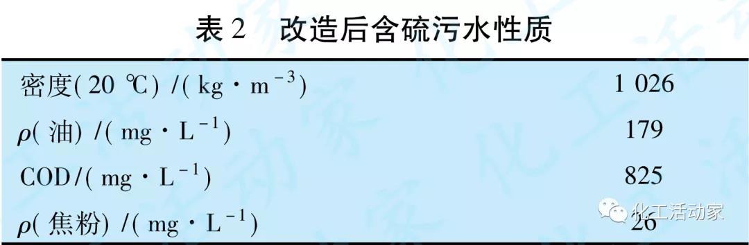 傳統(tǒng)的放空塔系統(tǒng)為間隙性操作,在焦炭塔冷焦過程運(yùn)行,其他時間則停用。停用后放空塔內(nèi)物料慢慢冷卻,水蒸氣冷凝并在放空塔底積聚,當(dāng)放空塔系統(tǒng)再次運(yùn)行時,因塔底無持續(xù)熱源,隨著高溫物料的進(jìn)入,塔底冷凝水突沸,引起塔底泵抽空,塔頂回流中斷。高溫油氣攜帶大量污油、焦粉沖出塔頂,造成塔頂空冷器易堵塞,冷卻效果差,以及塔頂回流罐污水含油率高、污水?dāng)y帶焦粉、乳化嚴(yán)重等問題,油水分離效果變差。放空塔頂污水硫質(zhì)量濃度化驗(yàn)分析一般在400~2000mg/L,污水性質(zhì)見表1。