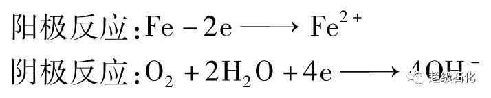 陽極和陰極反應的 Fe2+和 OH-生成Fe(OH)2,在氧氣作用下進一步生成 Fe(OH)3和Fe3O4,腐蝕產物疏松易脫落,缺乏保護性,從而進一步加劇腐蝕。