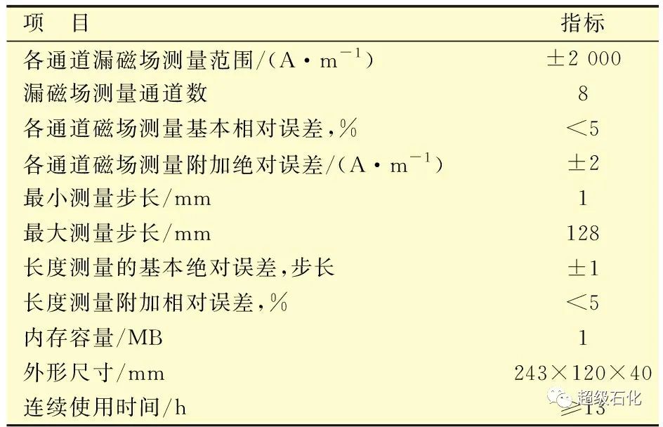 采用俄羅斯某公司出產的TSC-2M-8磁記憶檢測儀,用于鐵磁性構件焊縫的100%快速檢測和不同鐵磁性金屬構件的壽命評估。該設備為8通道磁探測式儀器,可根據儀器在檢測對象表面測得的漏磁場強度值和變化特性,按照檢測規范確定被檢工件的應力集中區、金屬結構的變化及存在的缺陷。儀器實物如圖1所示,具體儀器參數見表1。