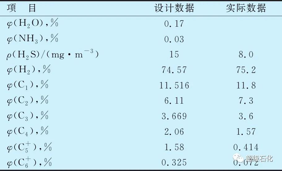 PSA裝置設計的原料氣及實際運行過程中原料氣組成見表1。