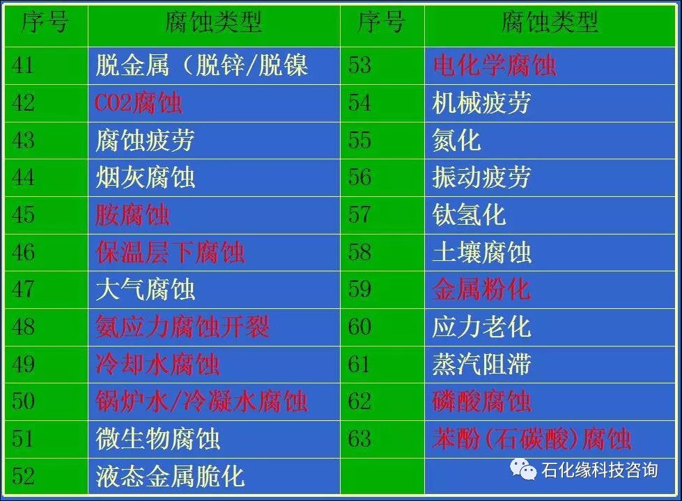 從這63中腐蝕類型或者叫腐蝕機理上來看,化工設備的腐蝕情況非常復雜。化工材料,設備環境,介質條件等等方面都是設備造成腐蝕情況的誘因或者條件。因此不同條件環境下的防腐措施也是不盡相同。要想了解各種防腐措施,就必須先清楚腐蝕的類型有哪些?